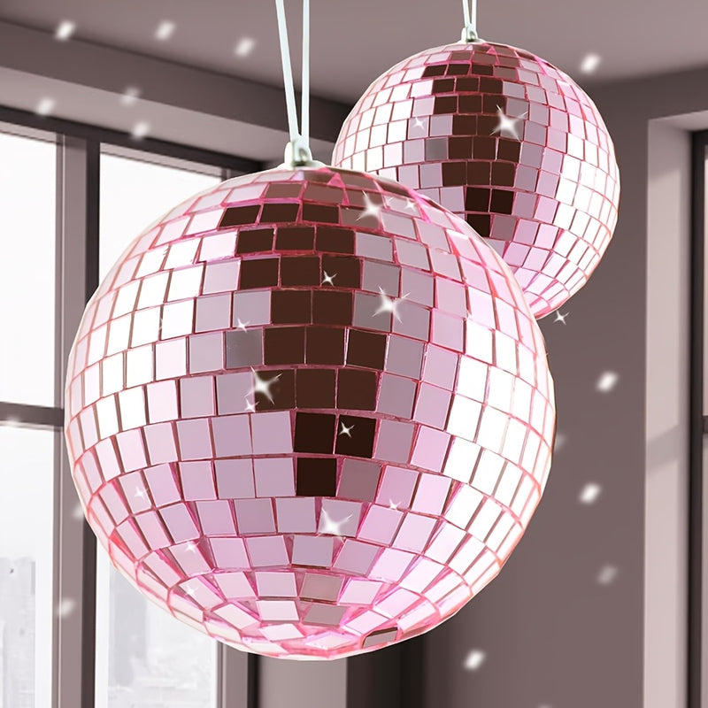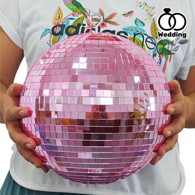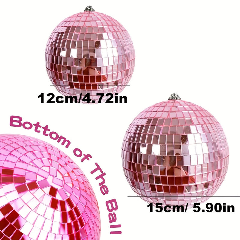 Esfera de Discoteca Espejo - Bola de discoteca rosa con cuerda para colgar, adecuada para fiestas grandes, cumpleaños y diseños de bodas, muy adecuada para clubes de DJ, decoración del hogar y escenarios en vivo con anillo para colgar, fácil instalación,