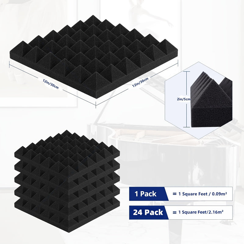 Paquete de 24 piezas de espuma acústica de alta densidad, 30*30*5 pulgadas, para piano, salas de ensayo de baile, paredes acústicas, teatros caseros, salas de conferencia, estudios de grabación y canales de techo, con retardante de llama.