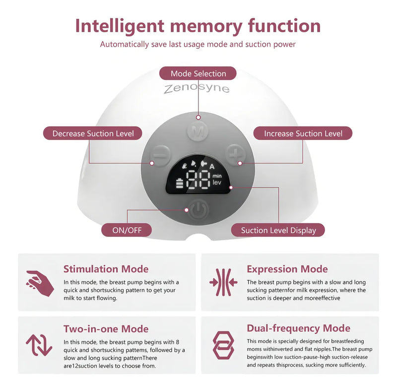 Funcionamiento versátil: cuenta con 4 modos distintos (masaje, expresión, lactancia, automático) con 12 niveles de succión ajustables para una comodidad y eficiencia personalizadas