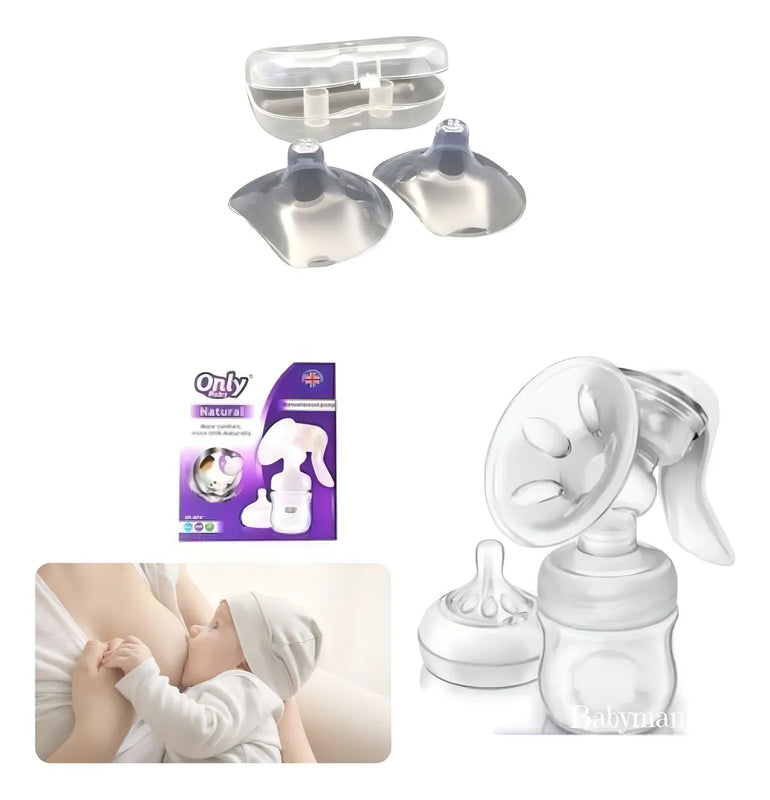 Extractor De Leche Manual + Pezoneras Par con cajita
