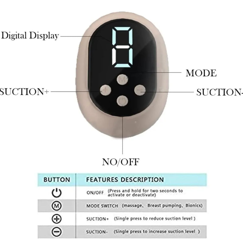 -3 modos: Modo de lactancia/masaje/succión, cada modo tiene 9 niveles de fuerza.