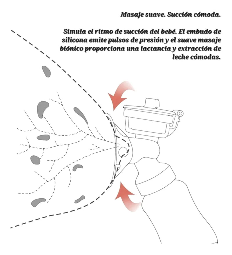 Para evitar molestias en el pecho debido a la atracción seca, el modo de masaje lactagogo precarga el pecho y masajea para estimular la producción de leche y aumentar la secreción.
