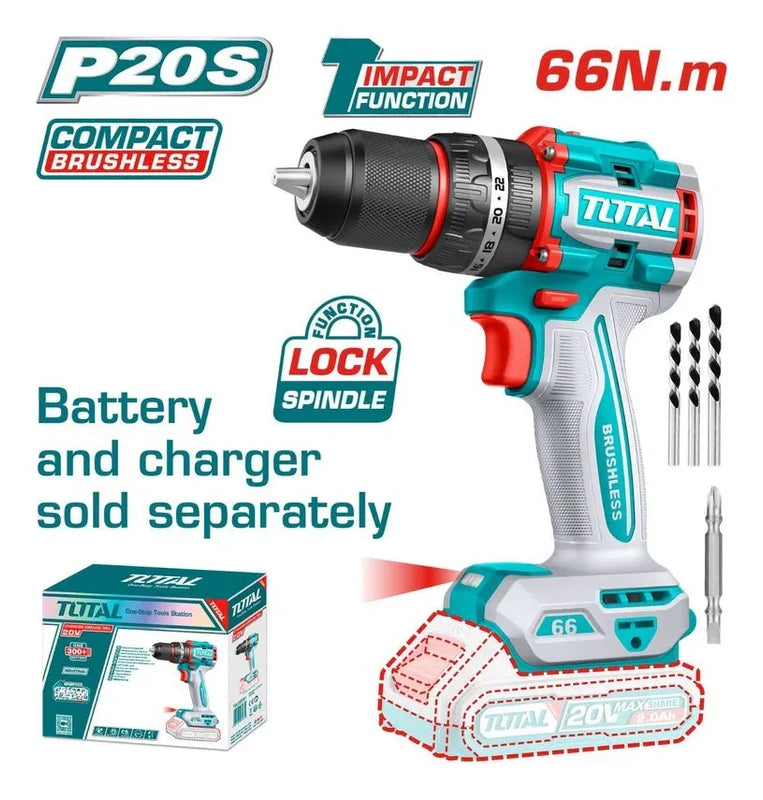 El Taladro de Impacto Drill Inalámbrico 20V Total Herramientas es la elección perfecta para quienes necesitan una herramienta profesional, liviana y con gran poder de perforación y atornillado. Gracias a su tecnología sin escobillas, torque optimizado y múltiples funciones de ajuste, ofrece rendimiento superior en cada uso. Su diseño inalámbrico y accesorios incluidos permiten comenzar a trabajar de inmediato si ya cuentas con batería y cargador Total.