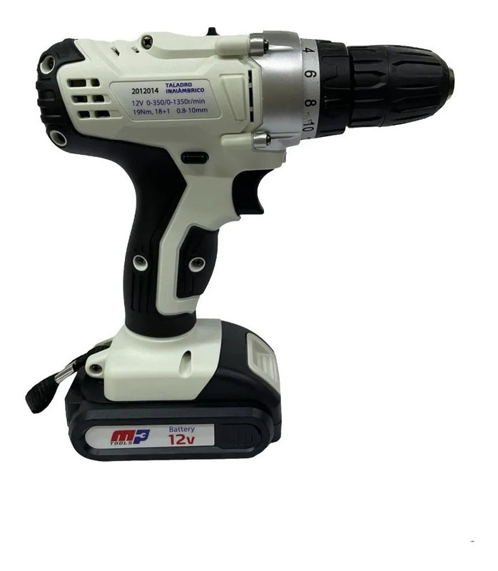 Taladro Inalambrico Mptools 3/8 Percutor 12v Profesional - Blanco
