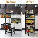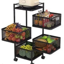 Estante de almacenamiento cuadrado giratorio de 4 niveles, estante de almacenamiento de metal para aperitivos de frutas y verduras, cesta de pie para cocina, dormitorio, baño, sala de estar