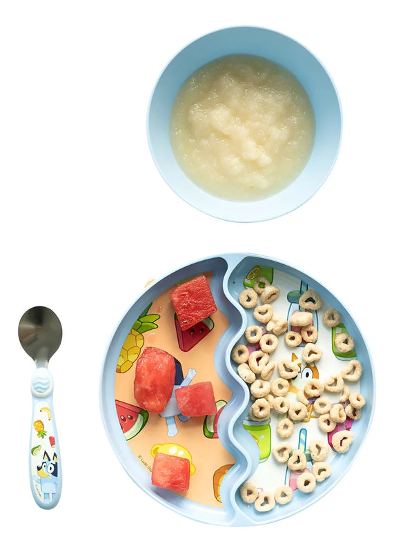 Bluey Juego X3 Piezas, Hora De Comer Con Plato De Succión Celeste Bluey 3-piece