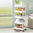 Carrito de Almacenamiento Rodante 3/4/5 Niveles - Organizador Multiusos de Plástico Resistente con Ruedas, Alta Capacidad y Diseño Estable para Dormitorio, Cocina, Camping, Armario, Despensa, Lavandería - Estante Versátil, Bandejas Amplias, Mango Telescó