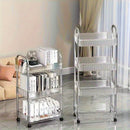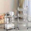 Carro de Almacenamiento Acrílico Multifuncional con Ruedas Giratorias de 360° - Apto para Todas las Estaciones, Capacidad para 10 Artículos, Organizador Transparente para Oficina, Dormitorio, Baño y Cocina | Multiusos, Estante de Pie, con Tubos Metálicos