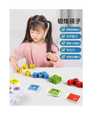 Los niños sujetan la tarjeta de emoji boca abajo sobre la mesa y abren una tarjeta a la vez, construyen los bloques de acuerdo con la referencia. El que tarda el menor tiempo gana.