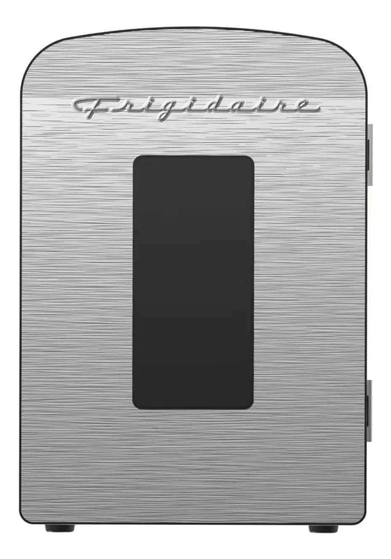 Mini refrigerador portátil de 9 latas, 5L, acero inoxidable cepillado robusto, ventana, EFMIS189-SS, puerta transparente, vidrio