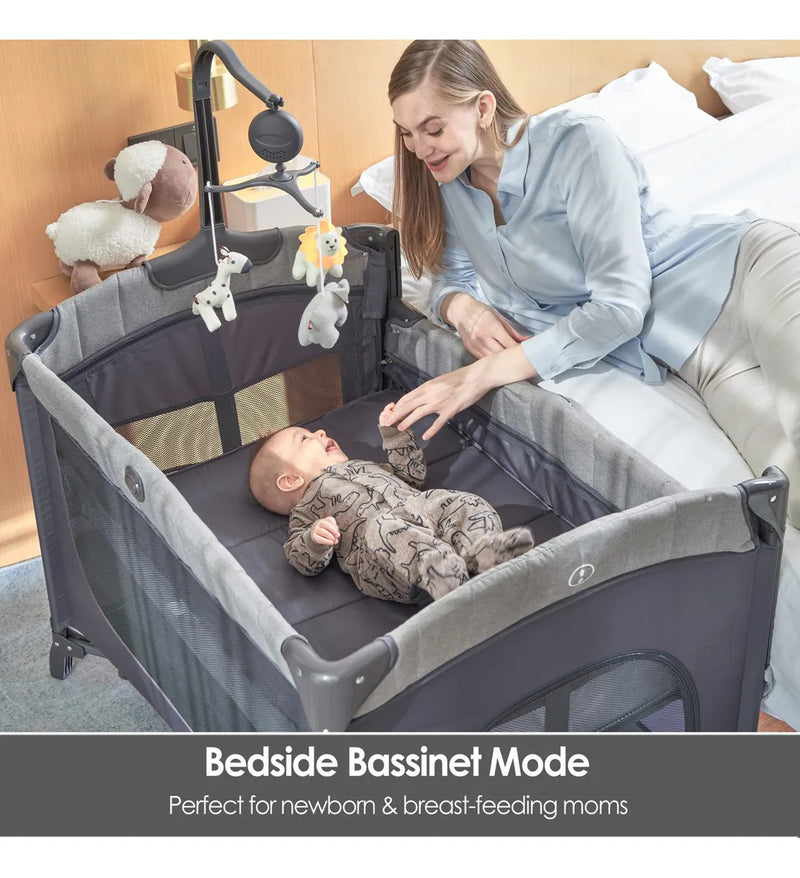 Ideal para dormir junto a tu bebé: puedes convertir fácilmente este paquete y jugar en una cama al lado de la cama. En el modo de dormir al lado, se ajusta directamente contra la cama de un adulto sujetando 2 correas de seguridad, lo que lo hace ideal para una madre recién nacida y lactante. Esta cama para dormir junto a la cama de bebé está diseñada para ayudar a las madres recién nacidas a volver a dormir más fácilmente después de alimentar a su bebé, y dormir una junto a la otra, un elemento esencial para bebés que mereces tener.