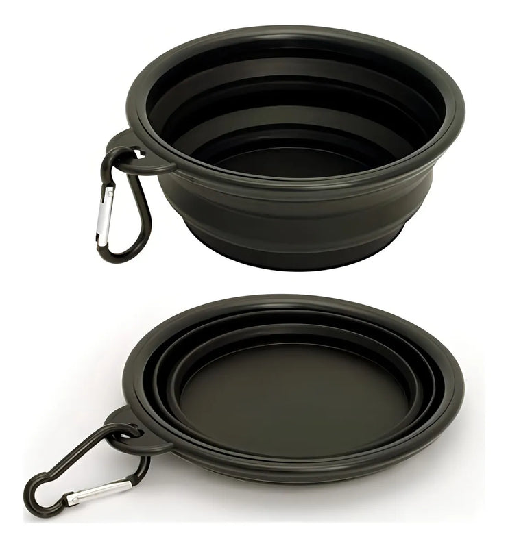 Plato De Goma Plegable Portátil De Mascotas Perro Y Gato Color Negro