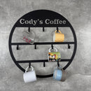 Estante de tazas de café personalizadas "Cody'S Coffee" - Organizador de pared con 6 ganchos, construcción de hierro, perfecto para decoración de cocina y comedor, accesorio para bar de café.