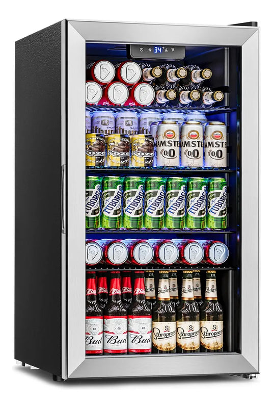 Capacidad de almacenamiento óptima: enfriador de bebidas de 3.2 pies cúbicos con 4 estantes ajustables que puede acomodar hasta 126 latas o varias botellas de vino, lo que permite un almacenamiento flexible ya sea vertical u horizontalmente. Este refrigerador de bebidas es perfecto para mantener tu refresco favorito, cerveza o vino frío y perfectamente organizado. Ya sea para tu cocina, bar en casa, RV, dormitorio o garajes, disfruta de un fácil acceso a una variedad de bebidas siempre mantenidas a la temperatura ideal.