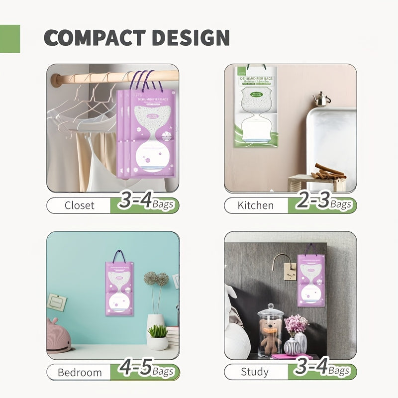 2 Bolsas Deshumidificador Colgantes - Absorbente de Humedad Resistente, Anti-Moho y Antihongos - Sin Necesidad de Electricidad, para Armario, Baño, Cocina, Sótano, Lavandería o Caravana - Control Duradero de la Humedad, Diseño de Flujo Continuo, Alta Cap