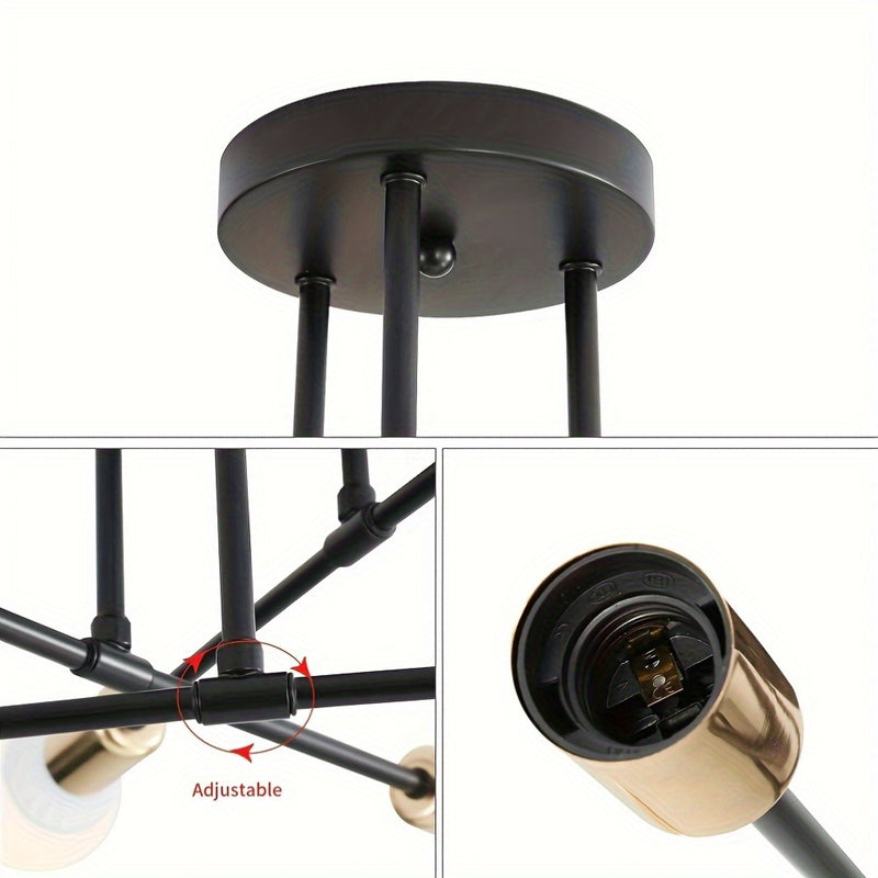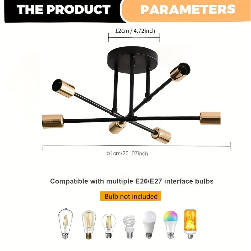 1 pieza de moderno satélite industrial, 6 cabezas, semi-revestido, con base de bombilla E27/E26, marco de metal y acabado negro/blanco/oro - Iluminación de decoración para el hogar, cocina, sala de estar, dormitorio, oficina, iluminación industrial, fijo