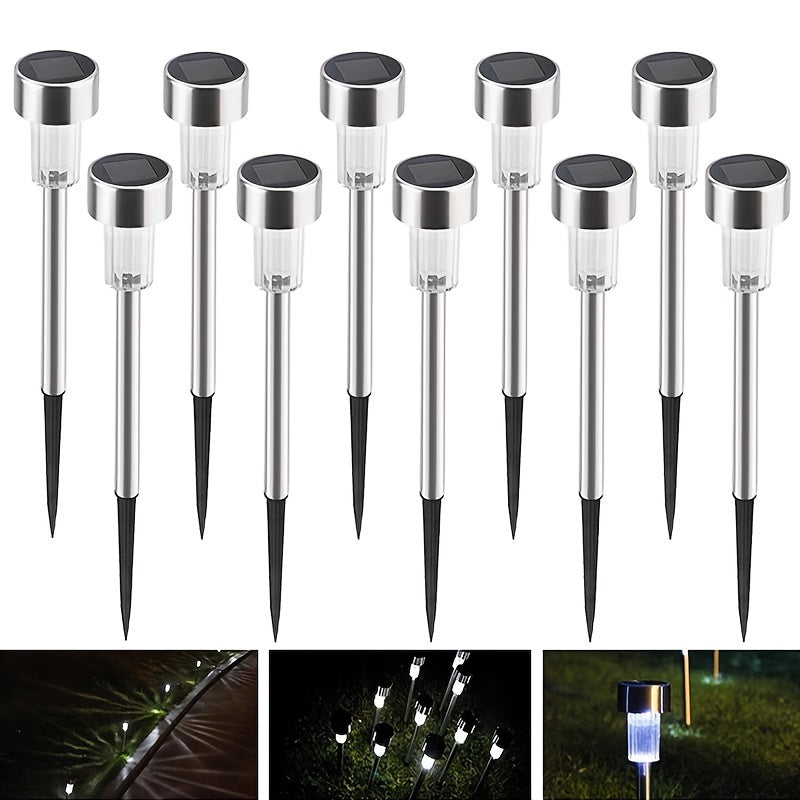 10 luces solares para caminos, con base de acero inoxidable y pantalla de vidrio esmerilado, iluminación exterior eficiente para jardín y patio, luces solares para exteriores