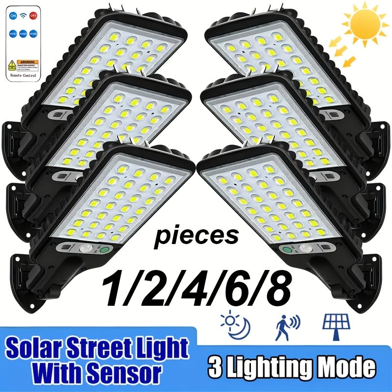 1/2/4/6/8 piezas de luz solar exterior para pared con sensor de movimiento - Energía solar, IP44, resistente al clima, control remoto, batería de litio recargable, cubierta de lente de plástico para jardín, garaje, patio trasero y iluminación de escenari