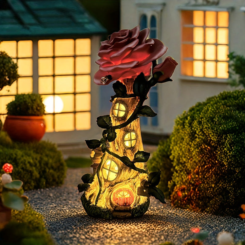 1pc Artesanía de resina Luz solar, Casa de rosas romántica, Casa de rosas que brillará, Adecuado para patio al aire libre, césped, jardín, estanque, mesa, porche, balcón, decoración navideña, regalos para amigos