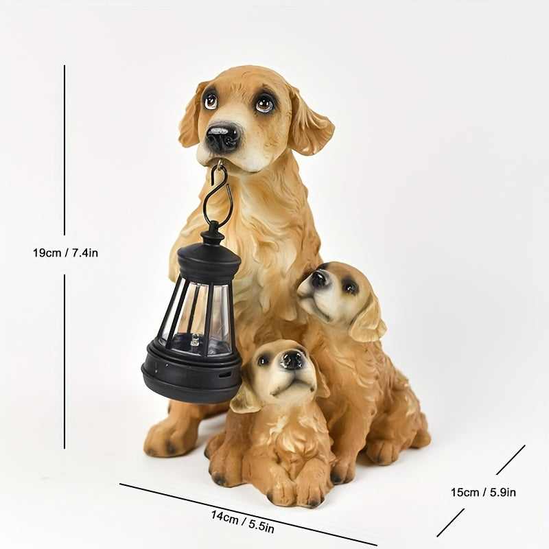 1pc Estatua de Luz Solar Exterior de Tres Pelo Dorado en Resina, Adorno para Patio y Jardín, Luz Ambiental Creativa para Balcón o Villa, Escultura Animal Decorativa, Regalo Ideal para Amigos o Día de la Madre