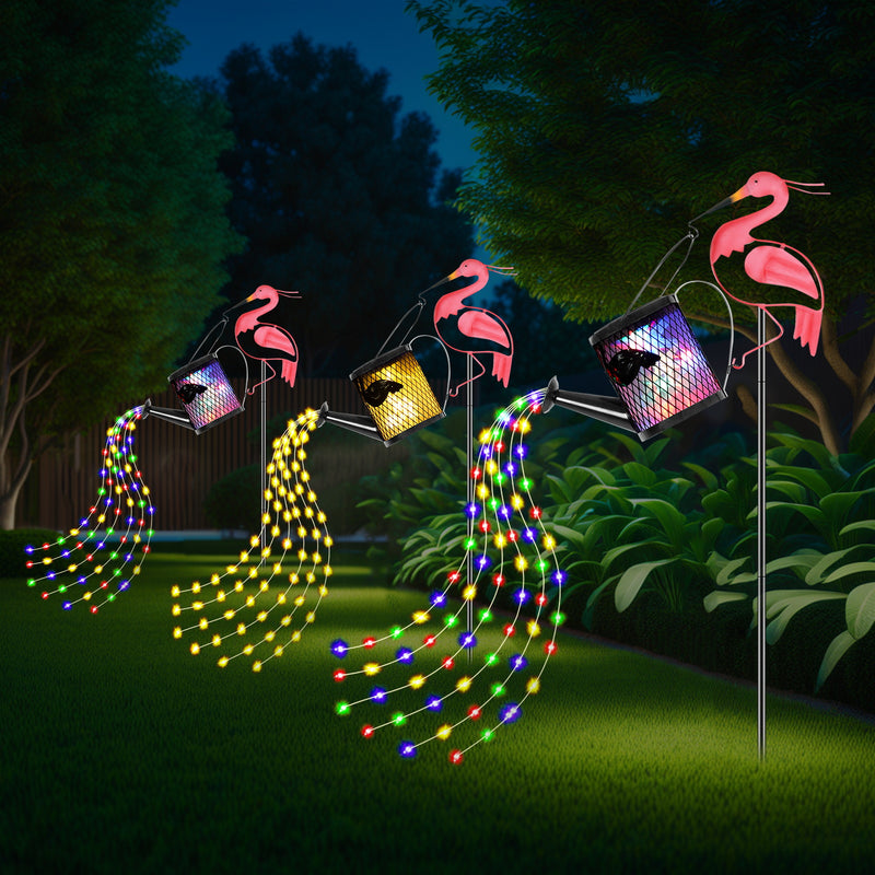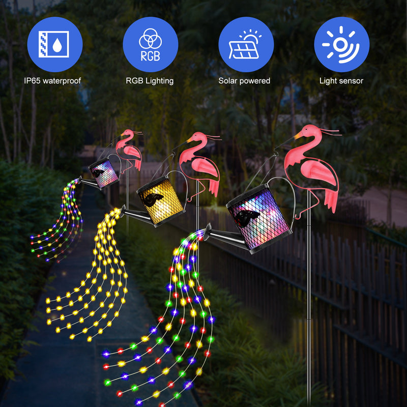1pc Regadera LED con Energía Solar, Lámpara de Metal Hueco con Alambre de Cobre, Luces Colgantes Parpadeantes para Jardín, Césped y Pasillo, Decoración de Paisaje Festivo, Iluminación Exterior, Adorno Navideño y Halloween