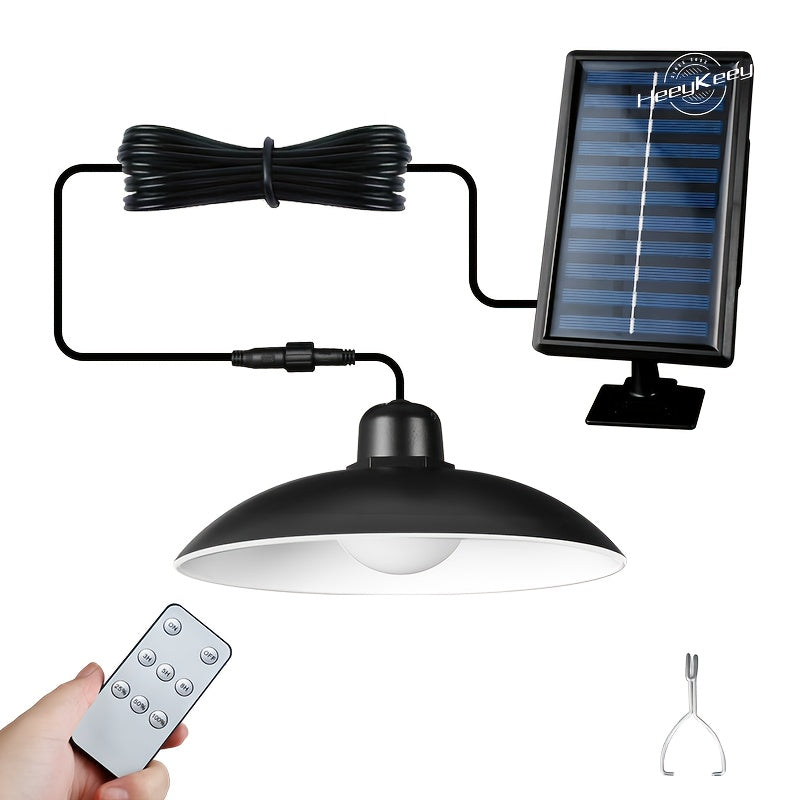 2 luces colgantes solares HeeyKeey con control remoto, 3 modos de iluminación y brillo ajustable, 2 focos LED con haz de 30°, cúpula negra de ABS para interior/exterior, patio, gazebo, cochera, sala, luces solares colgantes para exteriores, iluminación p
