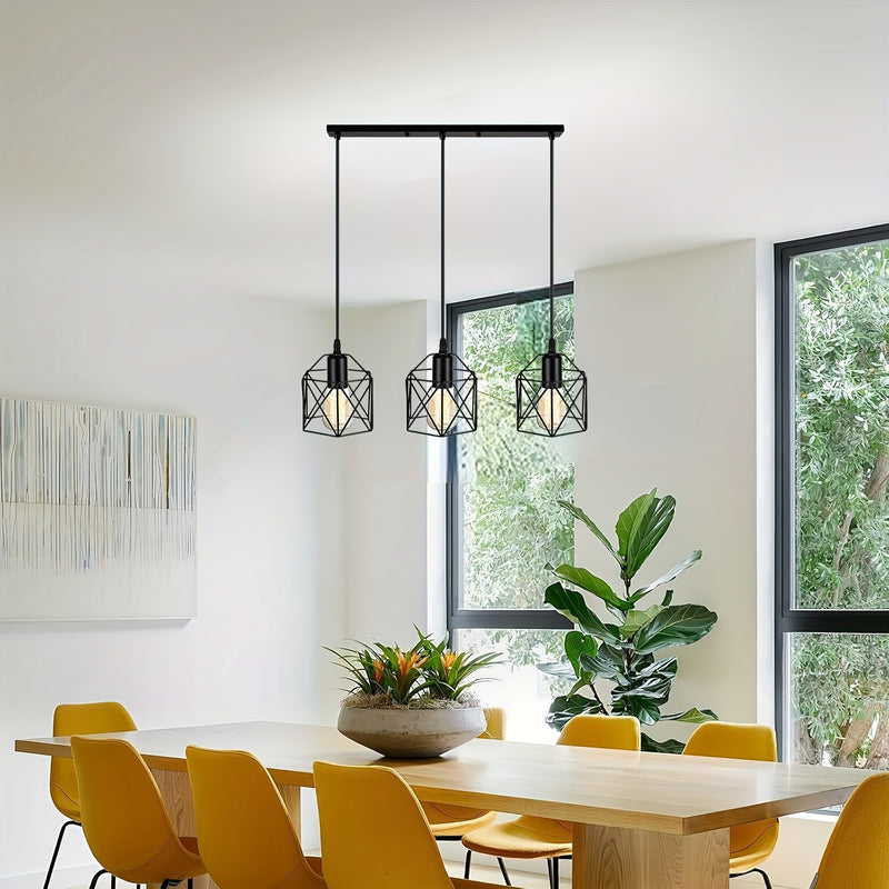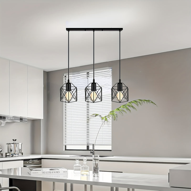 3 Luces de Colgante para Comedor, Luces de Cárcel Retro, Luz de Techo de Granja Ajustable de Altura, Luces de Cocina, Luz de Granja Colgante Negra para Luces de Colgante Industriales para Comedor, Dormitorio, Pasillo