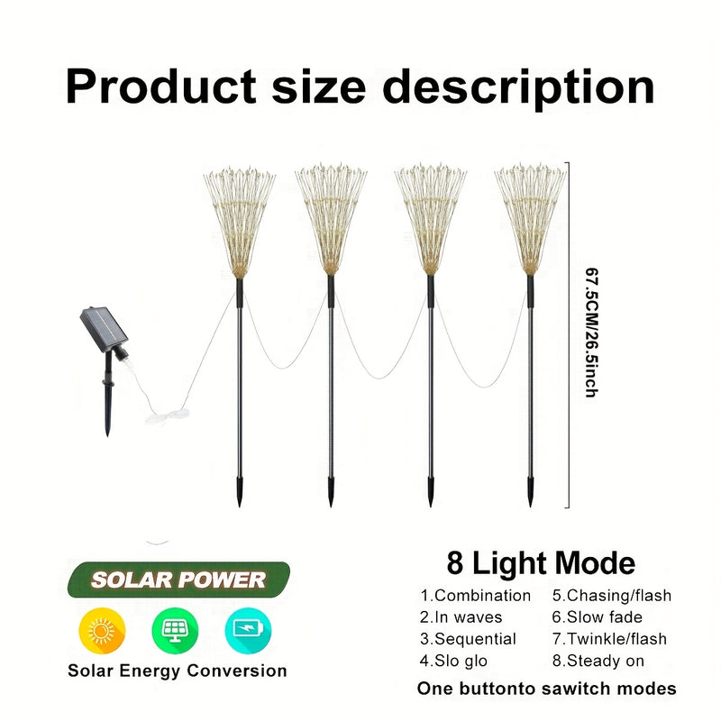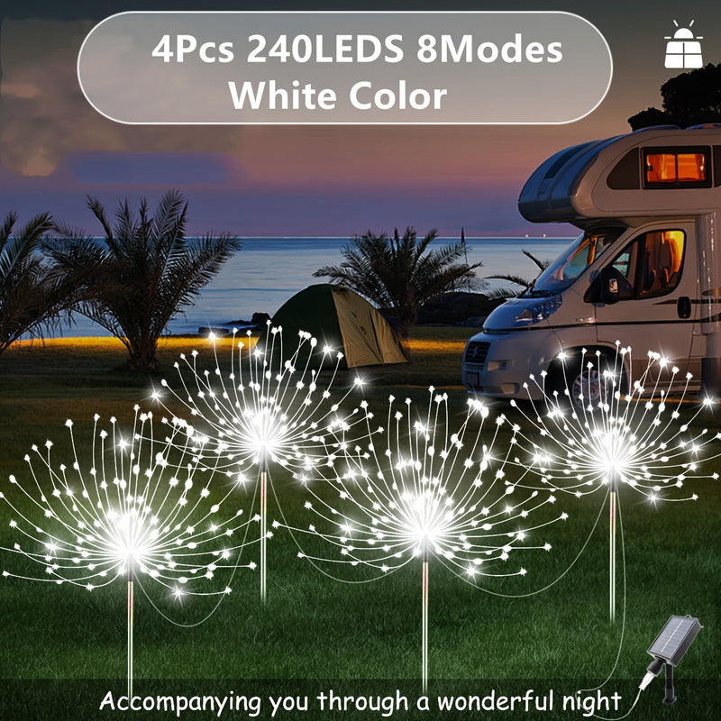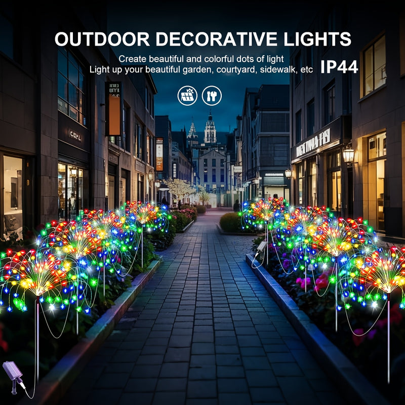 4 Luces de Jardín LED con Fuegos Artificiales Solares - 8 Modos de Cuento de Hadas, Luces Multicolor para Exteriores, Ideales para Ramadán, Navidad, Halloween, Cafeterías y Centros Comerciales, Calidad Alta IP44, Iluminación Solar Colgante