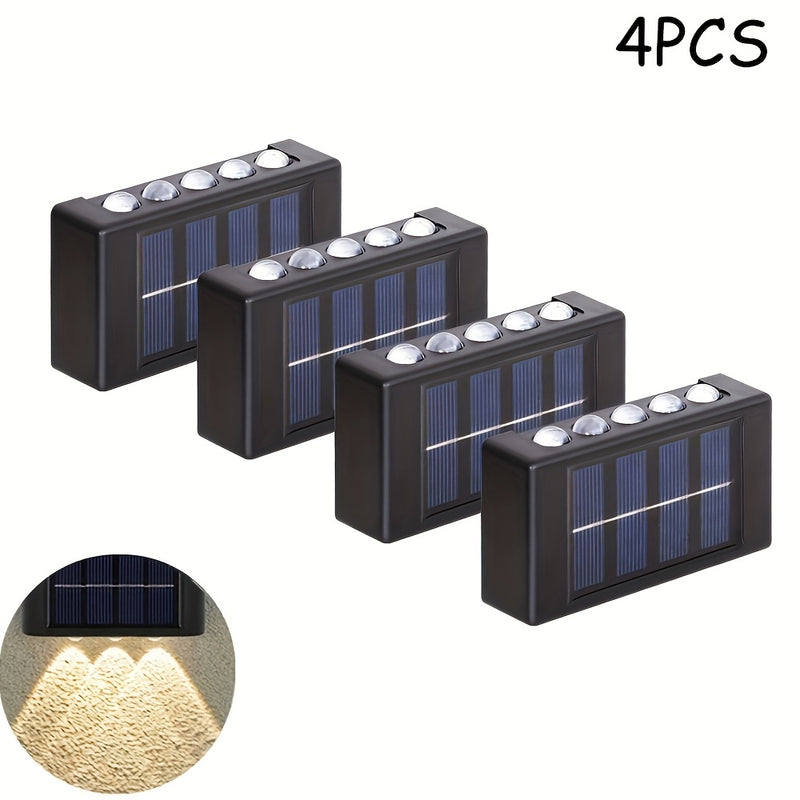 4/6/8 piezas, luz de pared solar de 10 LED, luz de atmósfera de iluminación exterior, luz decorativa de pared exterior, luz de paisaje LED para el hogar IP44, adecuada para exteriores, patio, villa, valla, balcón, terraza, jardín.