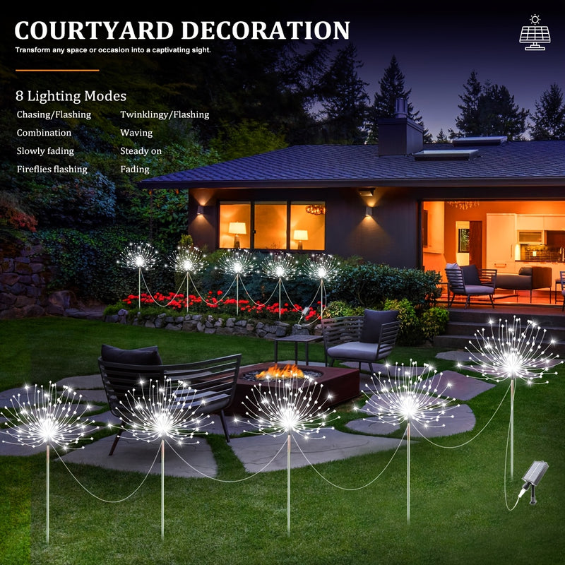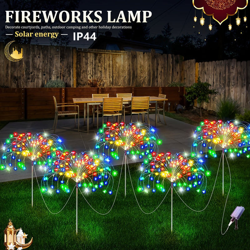 5 luces solares de fuegos artificiales para decoración exterior - 8 modos de iluminación, luces LED para San Valentín, Ramadán, Navidad, Halloween, bodas y fiestas en el jardín, perfectas para ambiente festivo, luces solares colgantes