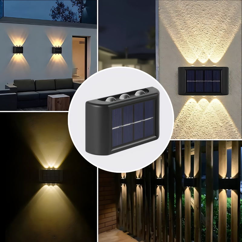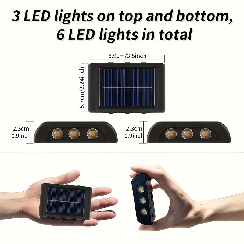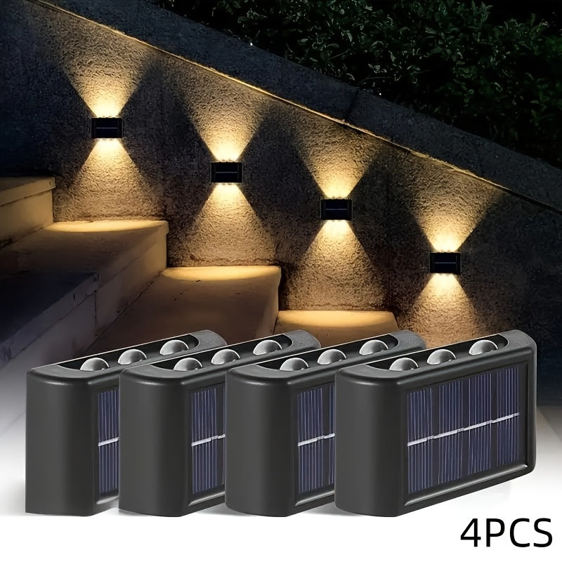 6 lámparas de pared LED, eficientes energéticamente, con carga solar, montaje semiempotrado, construcción de metal con pantalla de PVC, ideales para iluminación exterior e interior, lámparas de pared modernas, duraderas, apliques de pared para exteriores