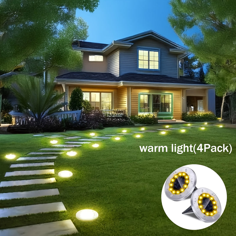 8 luces solares mini enterradas, lámpara solar de acero inoxidable para exteriores, iluminación de paisaje impermeable para patios, jardines, carreteras, aceras y césped, luz blanca + luz cálida, clasificación IP65, material de cobre, carga de panel sola