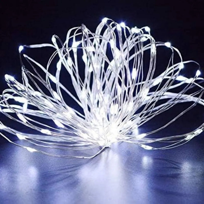 Alambre De Luz Led Navideña Recargable Con Panel Solar 100 Blanco