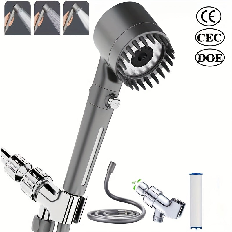 Cabezal de ducha con filtro para agua dura, mango portátil a alta presión, interruptor de encendido/apagado, incluye manguera, 3 filtros y soporte