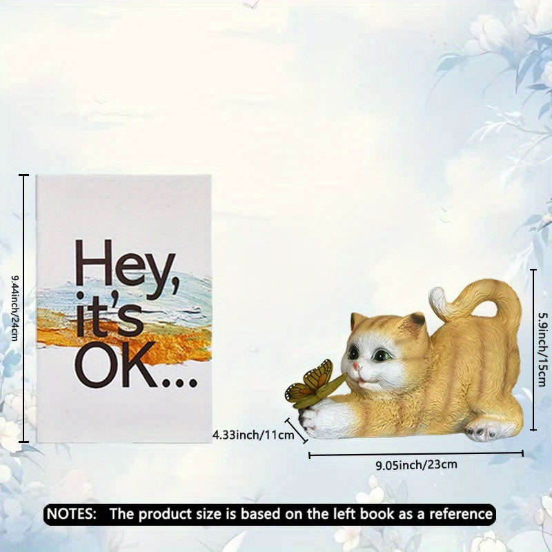 Estatua de gato de jardín con energía solar, con mariposa, impermeable IP65, ideal para patio, césped, balcón, decoración al aire libre, perfecta para Navidad, San Valentín, Acción de Gracias, decoraciones de jardín