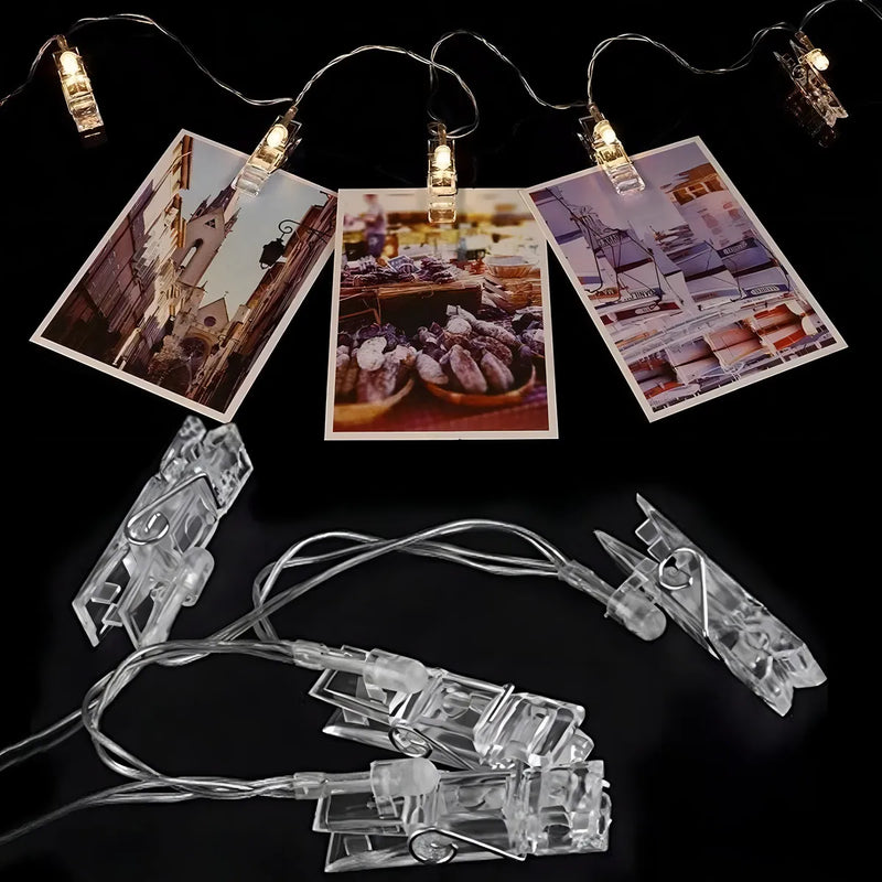 Guirnalda De Luces Led 20 Broches Para Fotos A Pilas 3 Mts Color De Las Luces Blanco