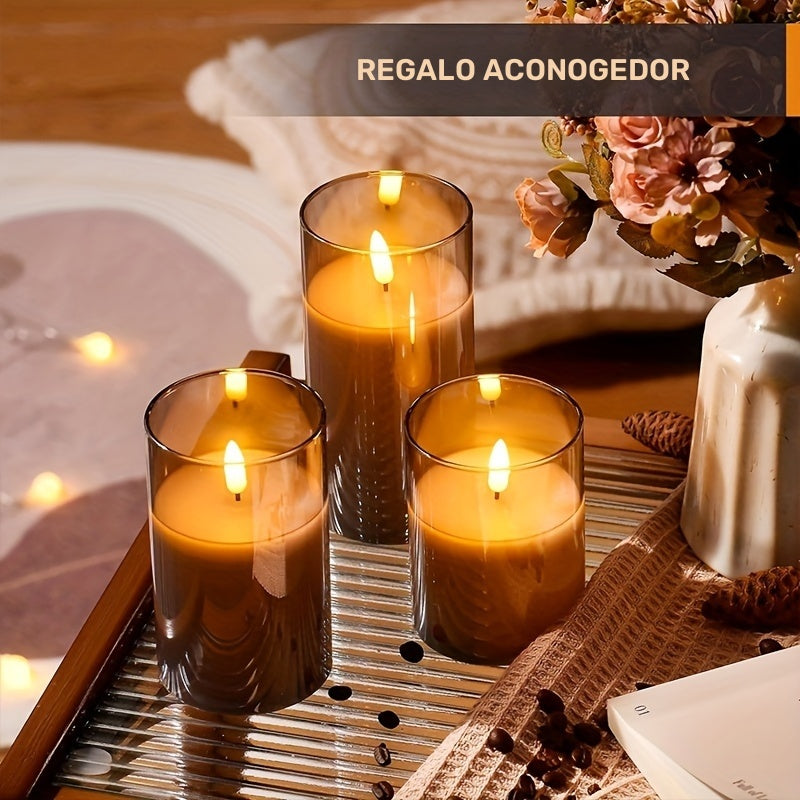 Juego de 3 velas sin llama, velas LED con batería, llama parpadeante, control remoto, ideal para hogar, dormitorio, propuesta de matrimonio, Navidad, Halloween, fiestas y decoración