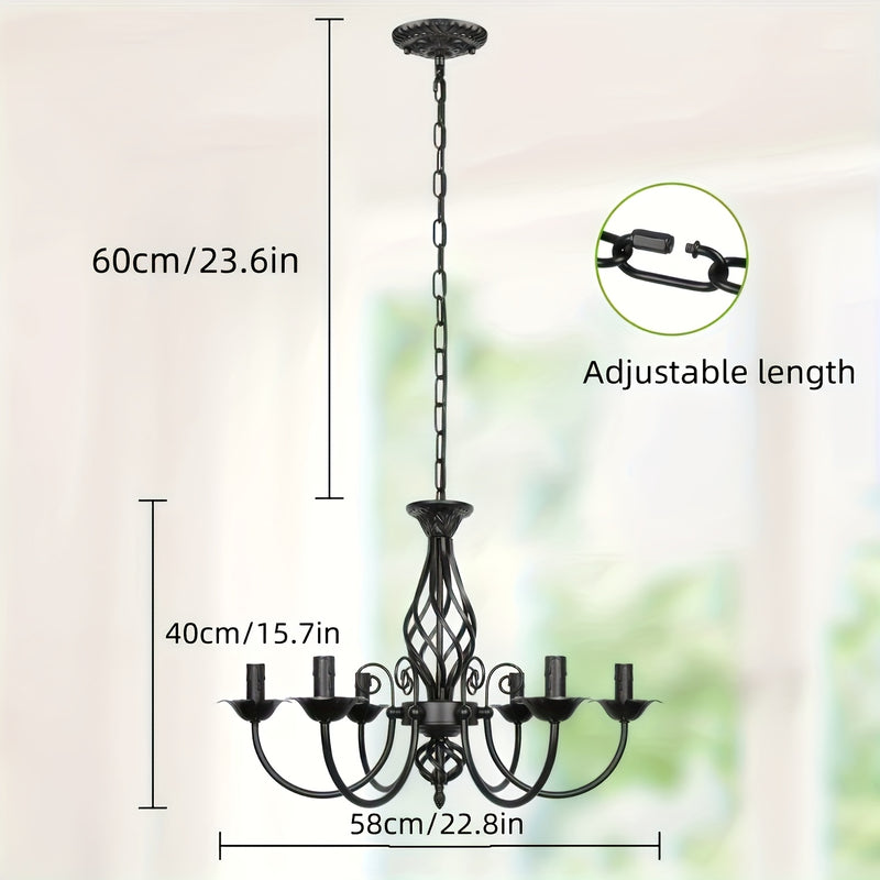 Lámpara colgante estilo granja con diseño industrial rústico, acabado negro mate, candelabro de metal de 5 brazos para dormitorio, pasillo, cocina, comedor, bar o entrada, base para focos E14 (focos no incluidos), luz para comedor | Estética industrial |