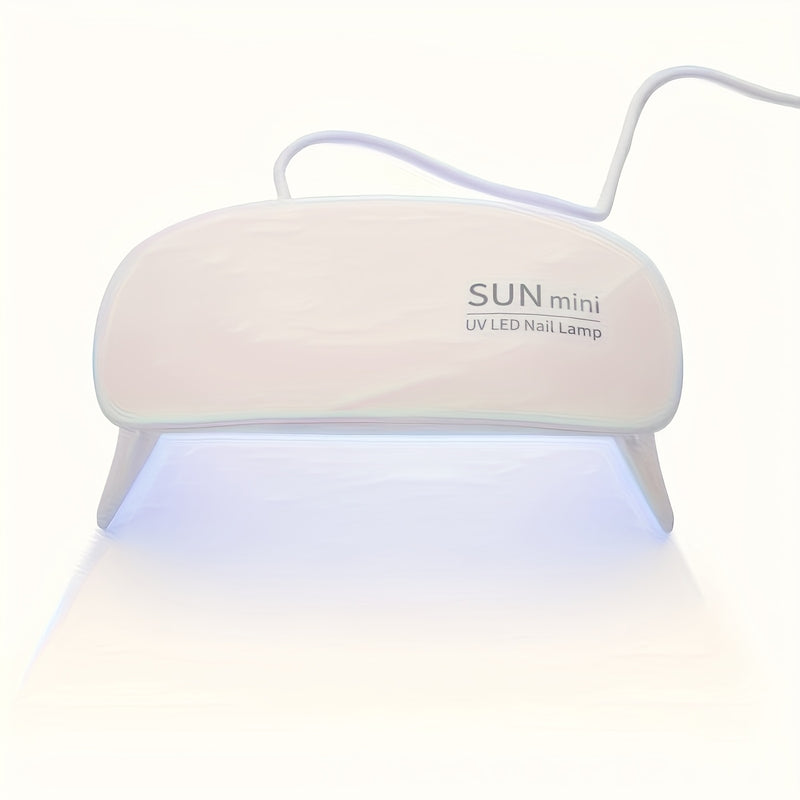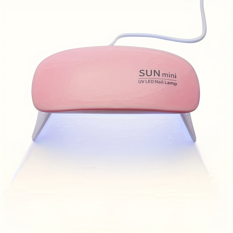 Lámpara de uñas portátil mini con 6 luces LED, color rosa y blanco, alimentación USB, diseño plegable, ideal para esmaltado en gel y secado, perfecta para cuidado de manos, pies y uñas