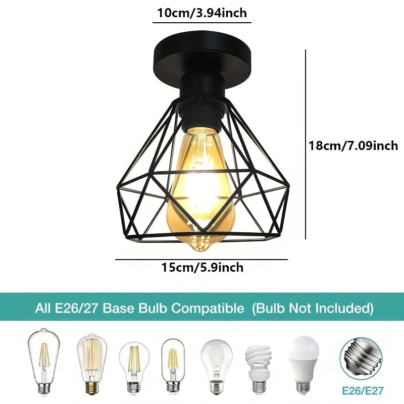 Linterna de techo estilo industrial retro rural con base para bombilla E27, pasillo, cocina, escalera, armario, luminaria de puerta (sin bombilla)