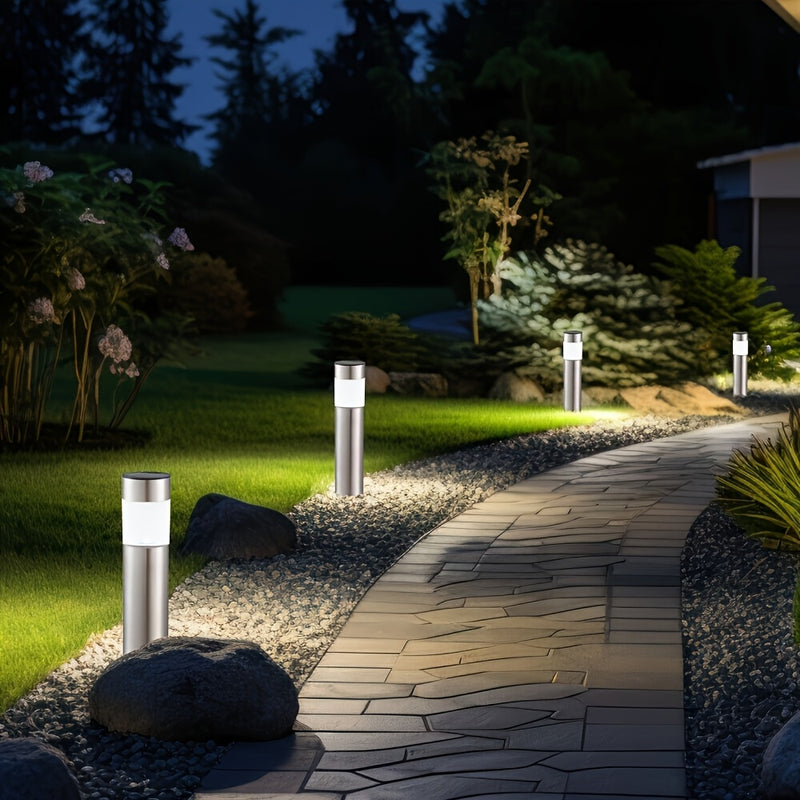 Luces solares LED para césped, luces decorativas de paisaje cilíndricas de acero inoxidable, ideales para patios, jardines, caminos, aceras y espacios exteriores con ambiente festivo