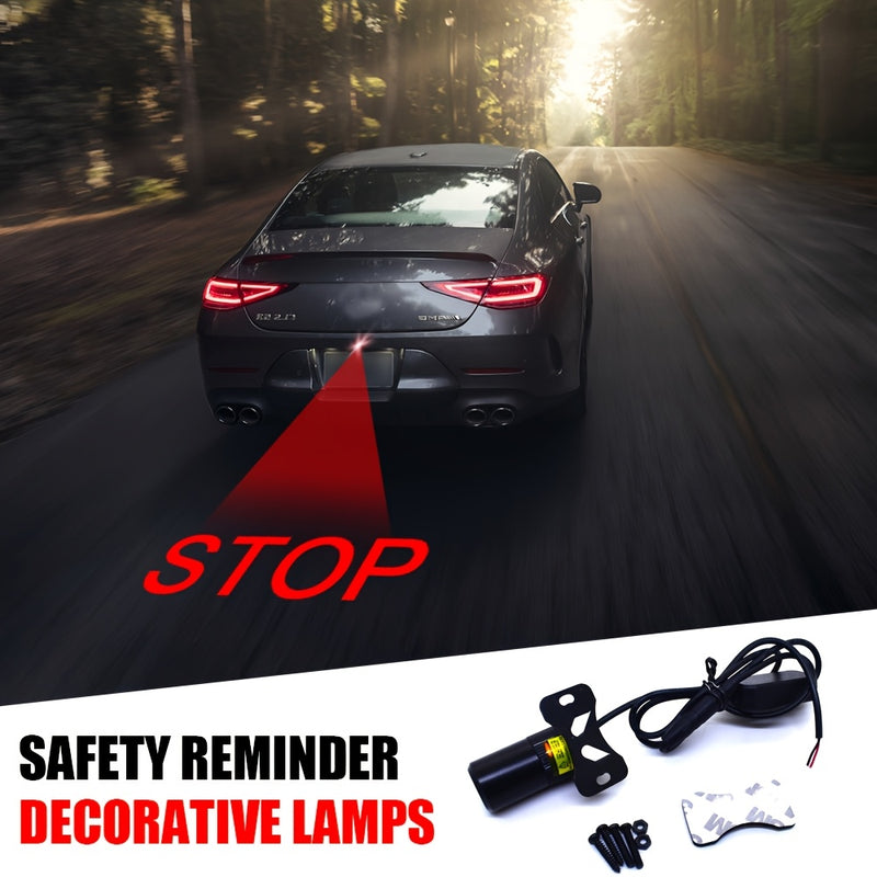 Luz de proyección LED de seguridad GCYS - Diseño de calavera STOP para autos y motocicletas, 12-24V con cableado duro, lámpara decorativa anticolisión con soporte ajustable, GCYS