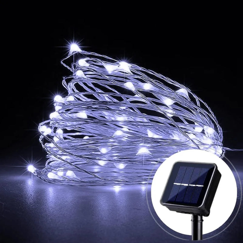 Luz Led De Navideña Recargable Con Panel Solar 100 Leds New Cálida