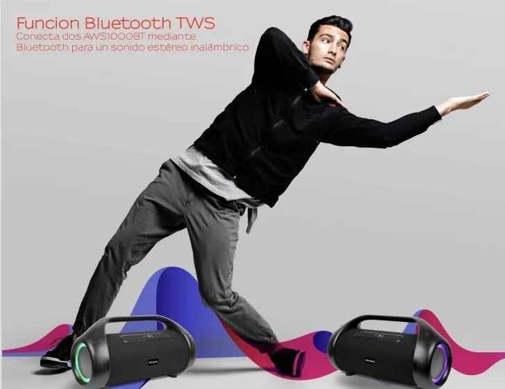 Bocina Portátil Aiwa Aws1000bt Negro Bluetooth 90W RMS Resistente al Agua con Luces LED