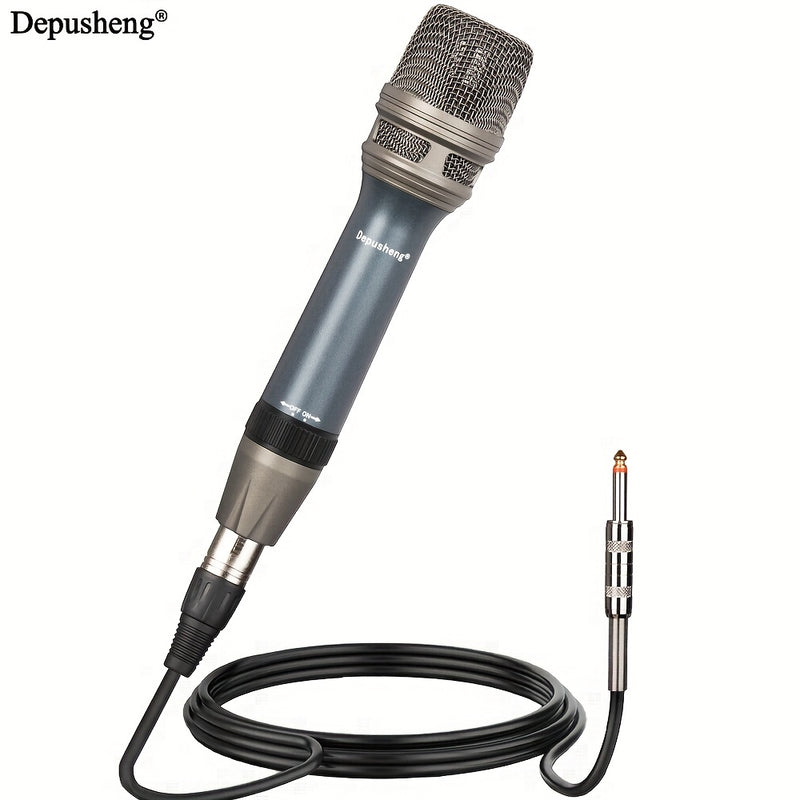 Micrófono vocal dinámico profesional DEPUSHENG C90 - Micrófono dinámico cardioid unidireccional con bobina móvil, interruptor ON/OFF, cable de audio XLR de 177 pulgadas y conector de 1/4" para grabación, canto, karaoke, grabación de voz, diseño elegante