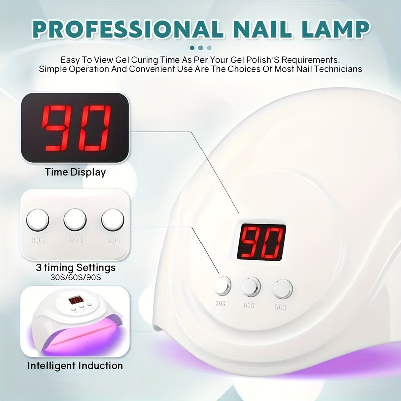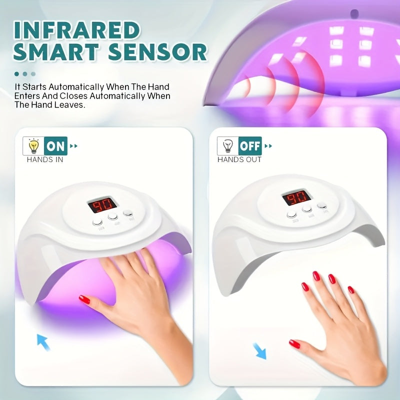 Secador de Uñas LED de Alta Potencia 24 Luces - Pistola Portátil USB con Sensor Automático y Pantalla LCD, Diseño Hipoalergénico Blanco para Salón o Hogar, Herramienta Compacta y Duradera para Manicura, Ideal para Gel, Plástico Hipoalergénico, Perfecto p