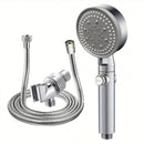 Juego de regadera de alta presión en color gris metalizado con 5 modos de rociado ajustables, manguera de acero inoxidable y soporte - Fácil instalación en pared, sin necesidad de electricidad para una experiencia de baño lujosa en el hogar