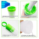 - Las suaves cerdas de silicona en la botella ayudan a aflojar la suciedad y el barro de las patas de su perro.