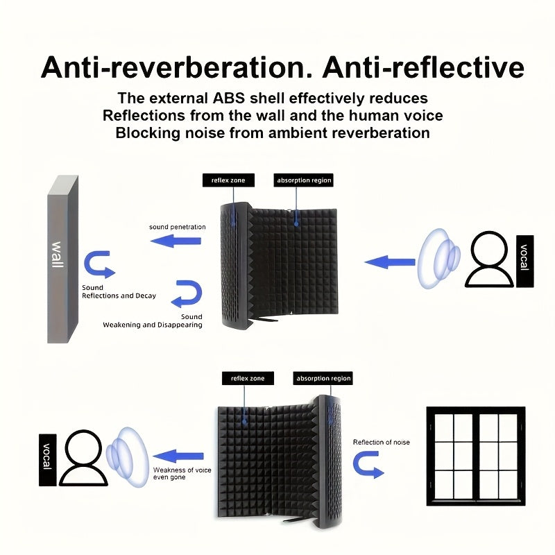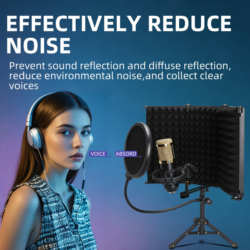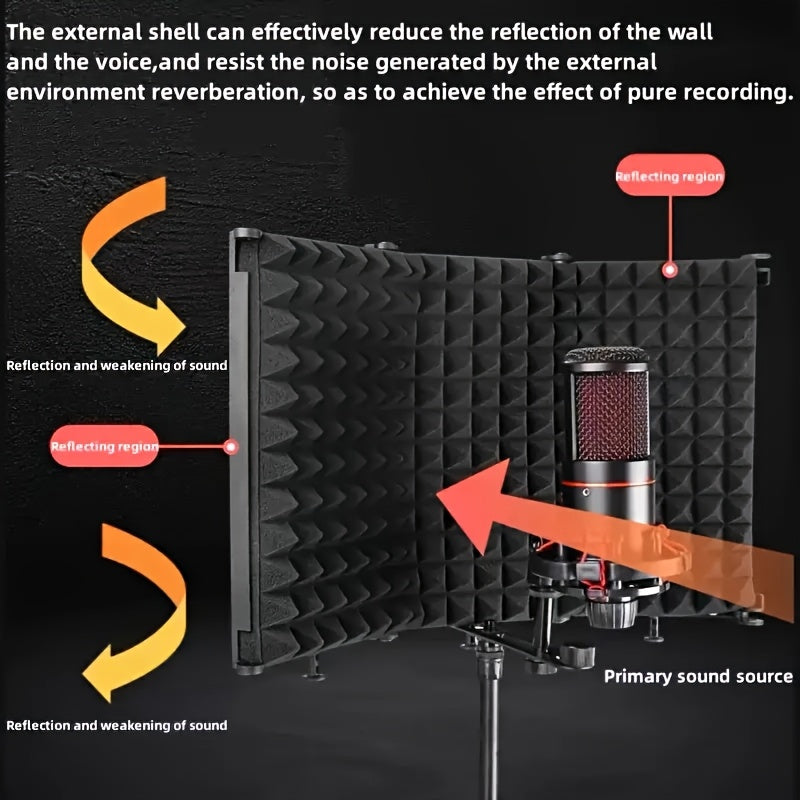 Equipo Profesional de Micrófono para Estudio Portátil con Funda Antirruido + Soporte, Pantalla Acústica Plegable para Grabación, Doblaje y Canto, Resistente al Viento y Salpicaduras, Reducción de Ruido. Cubierta de Espuma de Alta Densidad, Carcasa de Mat
