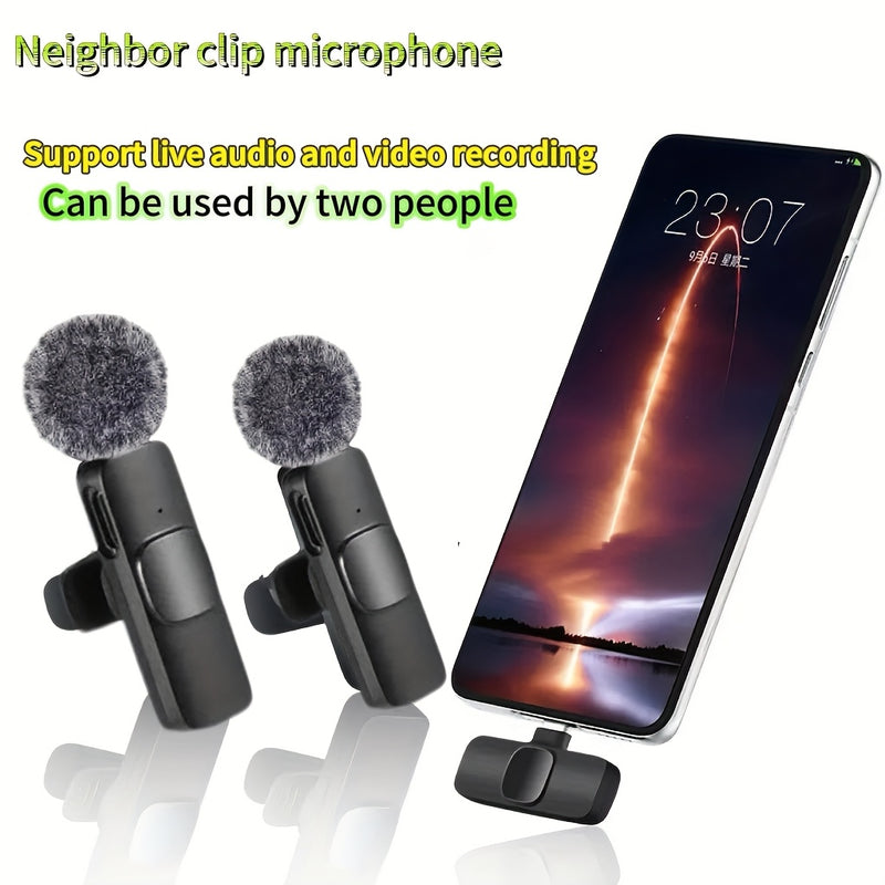 Feng Yang Clip de solapa inalámbrico para teléfonos Android, enchufe USB-C Plug & Play, sincronización automática de micrófono, alimentado por batería/uso dual USB, recargable de polímero de litio, para teléfono inteligente